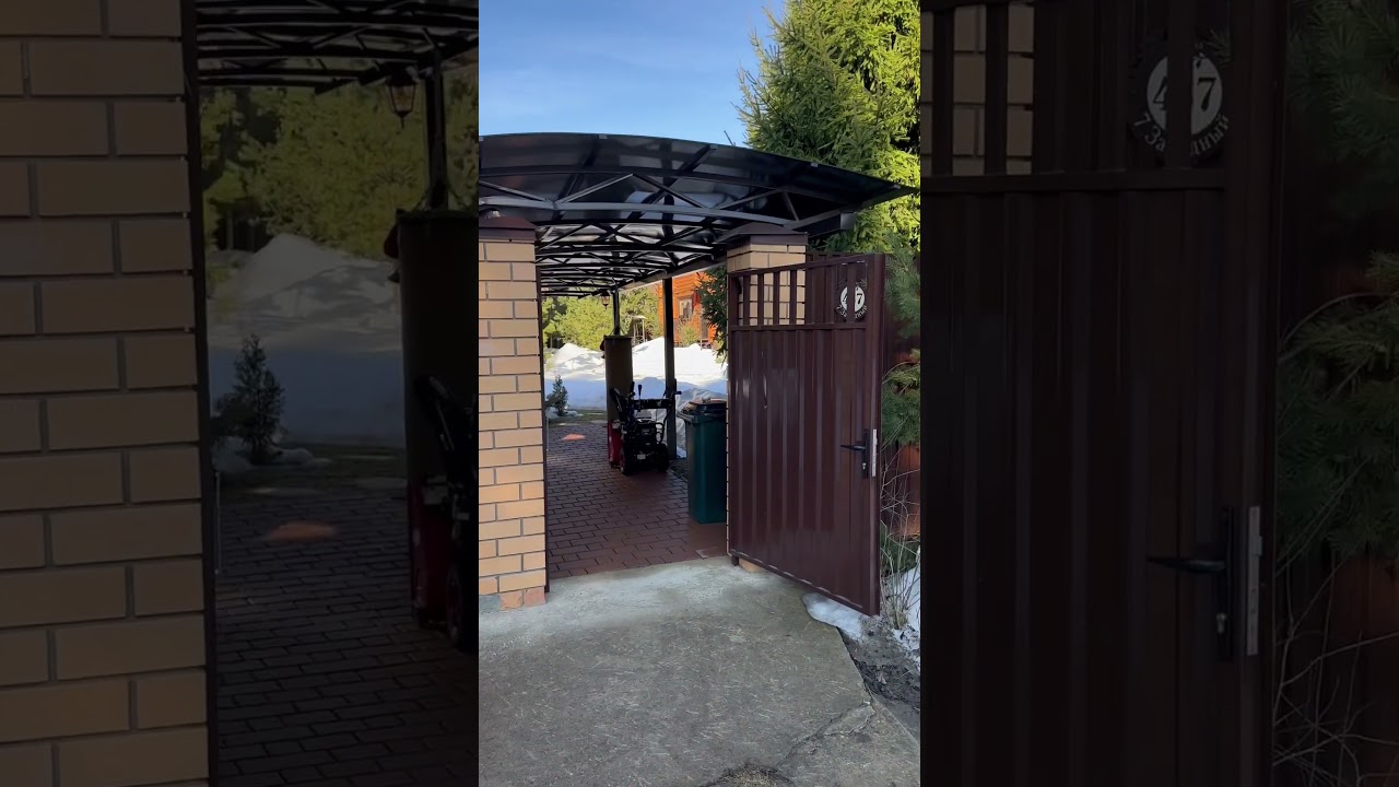 Собрали односкатный арочный навес из поликарбоната для машины скат от соседа